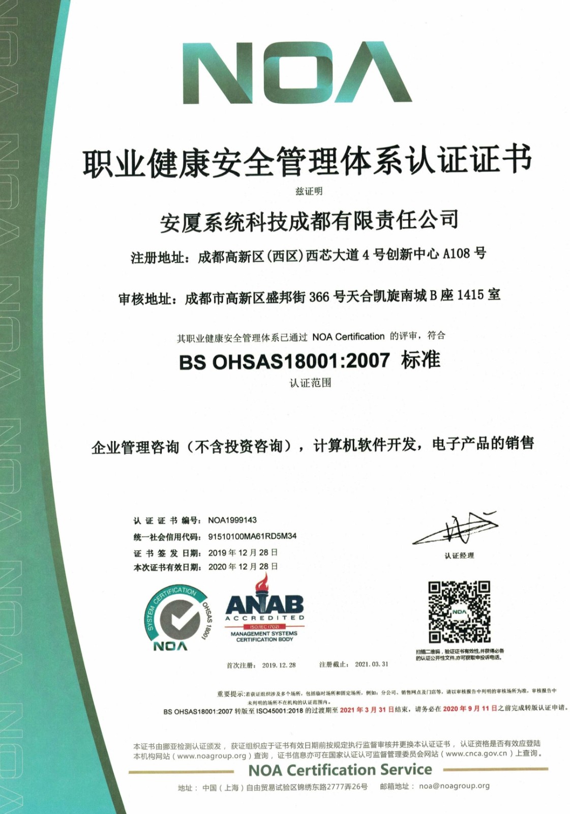 安廈系統科技成都有限責任公司成立于2015年,專注于提供風險管理整體咨詢及技術服務,業務涵蓋安全健康環保管理體系咨詢服務、安全生產標準化建設咨詢服務、應急預案咨詢服務、第三方安全監管服務、安全培訓服務、安全信息化開發服務。