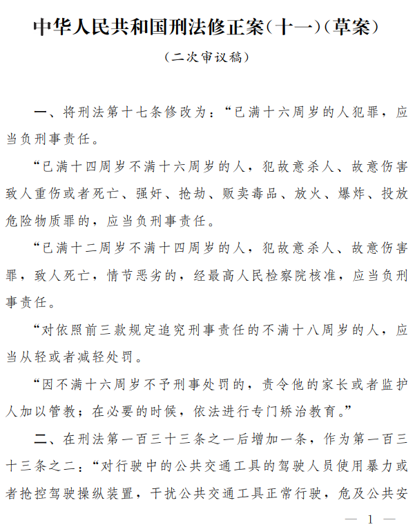 第十三屆全國人大常委會第二十二次會議對《中華人民共和國刑法修正案(十一)(草案二次審議稿)》進行了審議,現(xiàn)公布《中華人民共和國刑法修正案(十一)(草案二次審議稿)》全文。