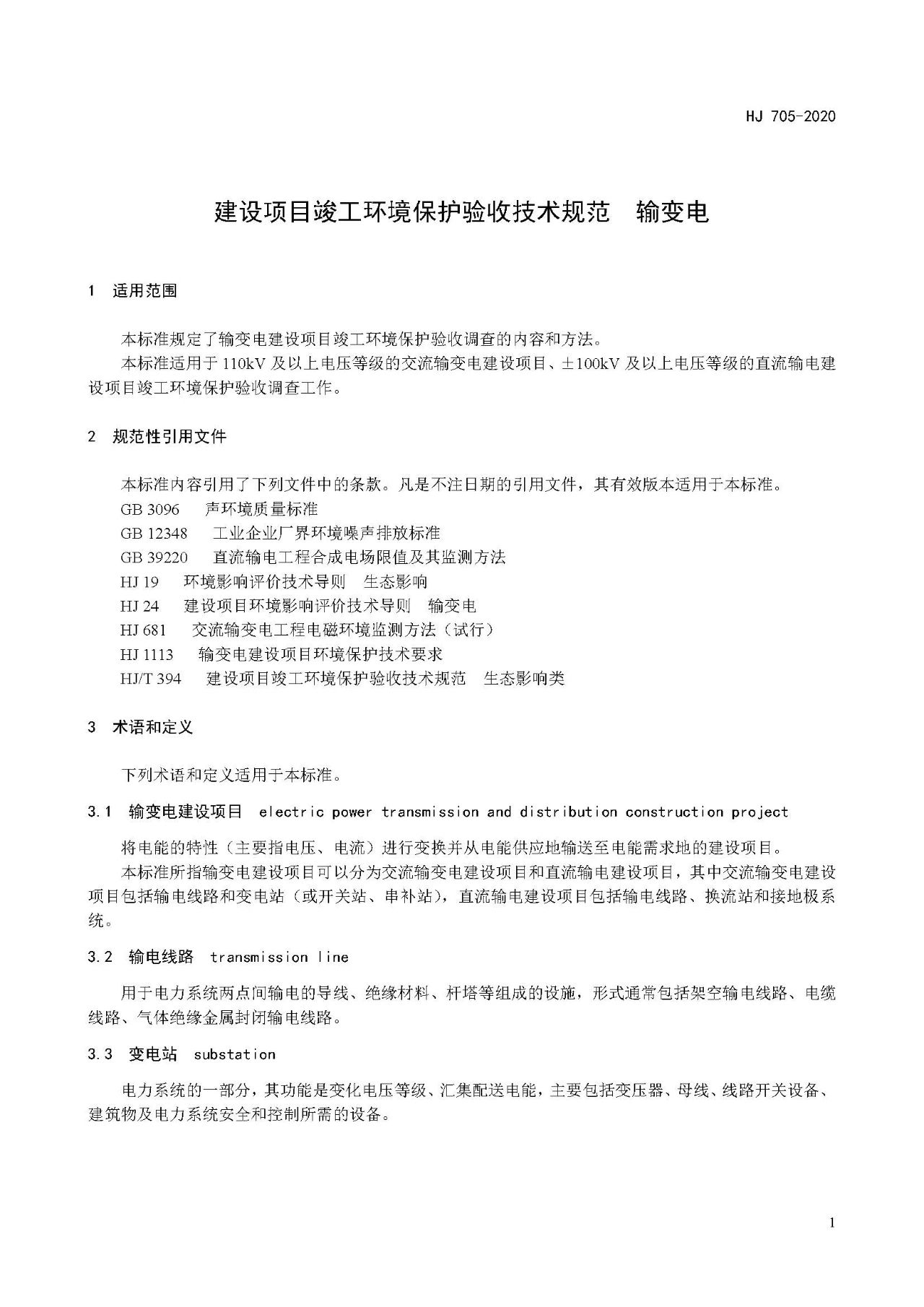 三、《建設項目竣工環境保護驗收技術規范 輸變電》(HJ 705-2020)