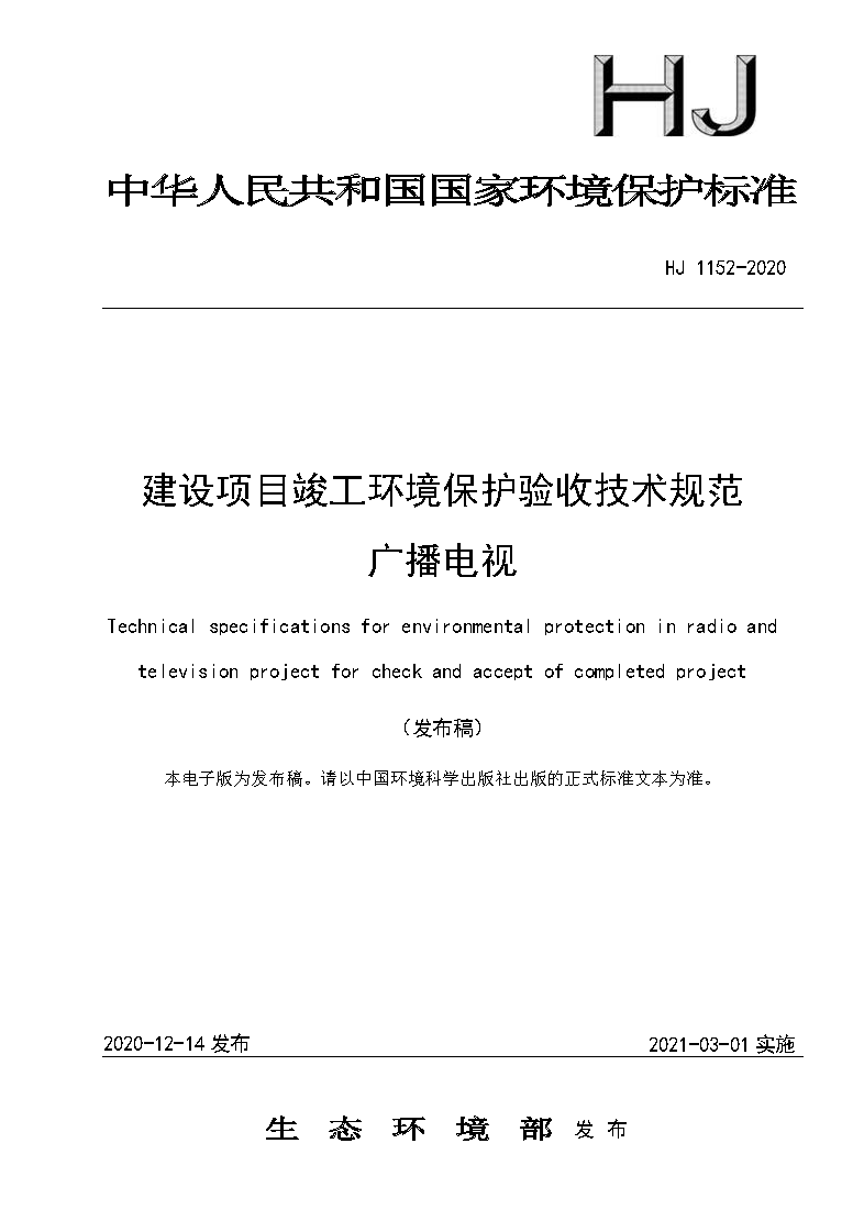 四、《建設項目竣工環境保護驗收技術規范 廣播電視》(HJ 1152-2020)
