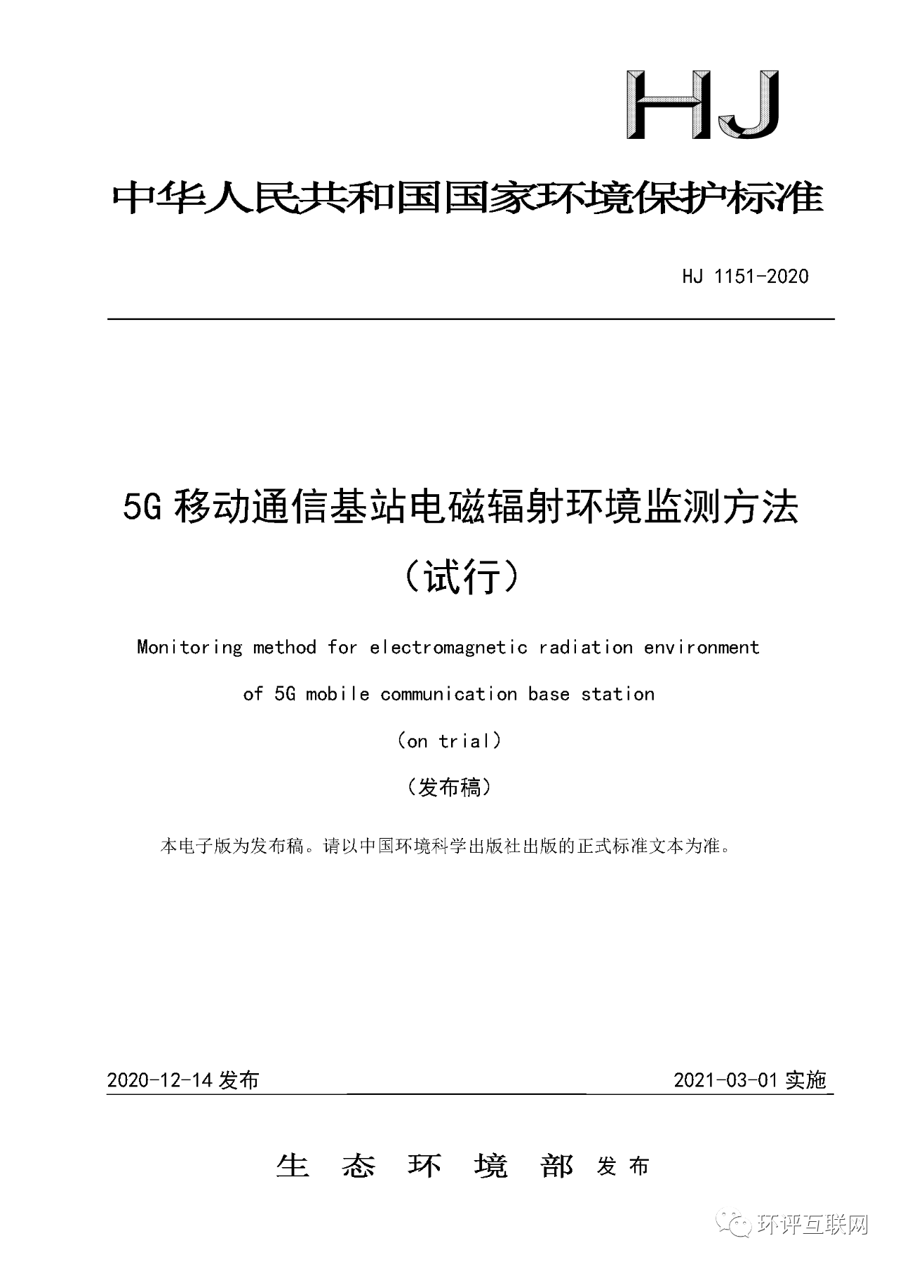 一、《5G移動通信基站電磁輻射環境監測方法(試行)》(HJ 1151-2020)