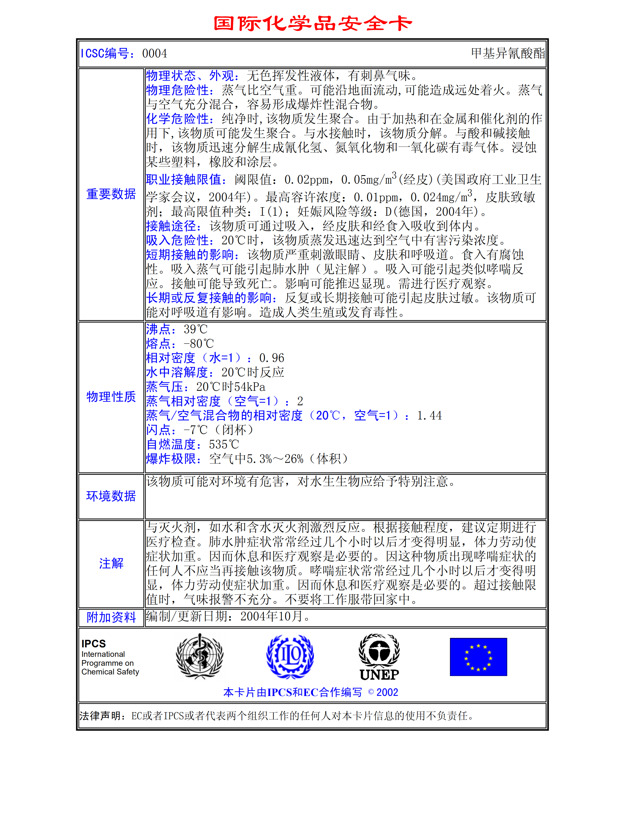 甲基異氰酸酯MSDS