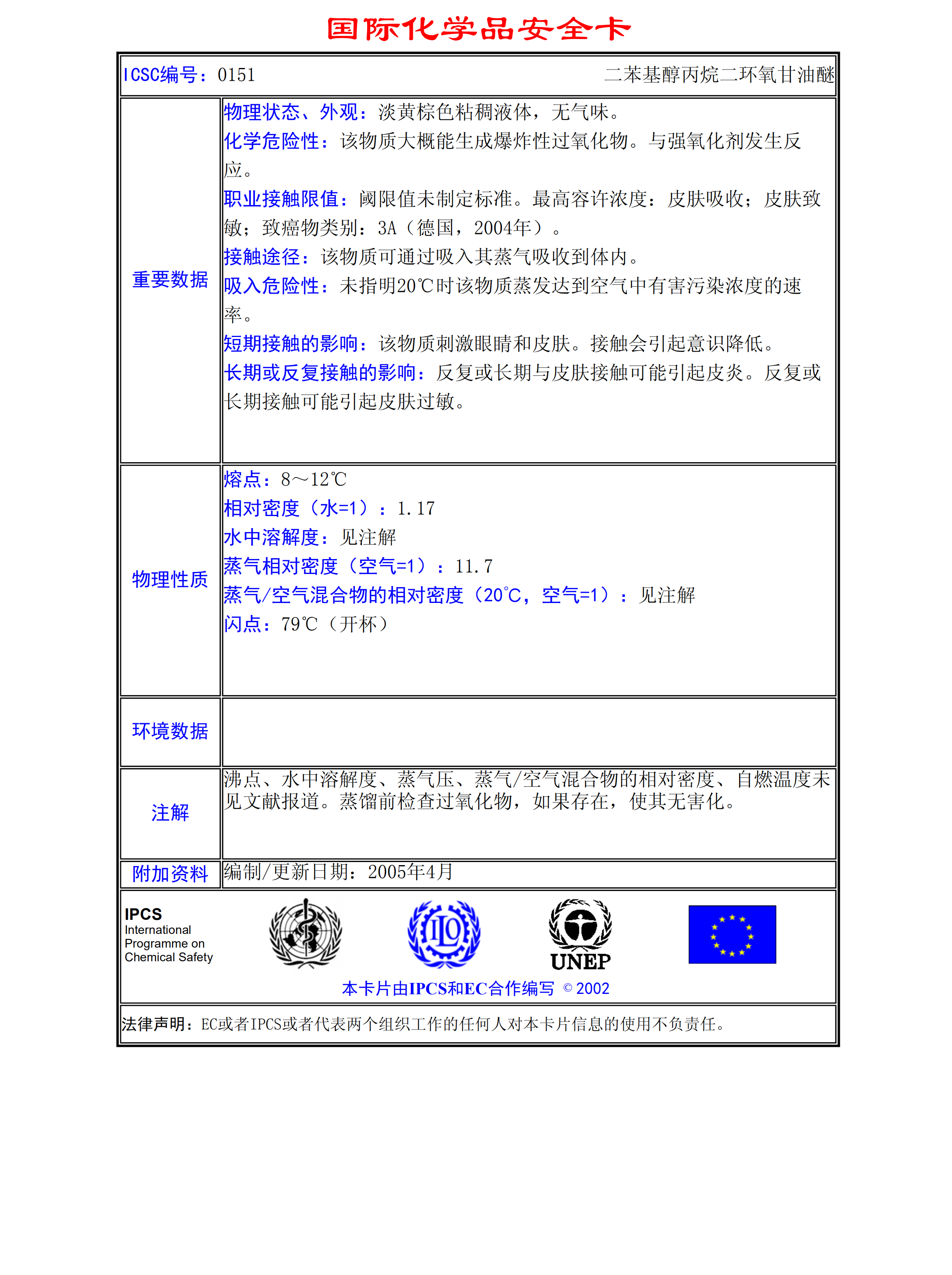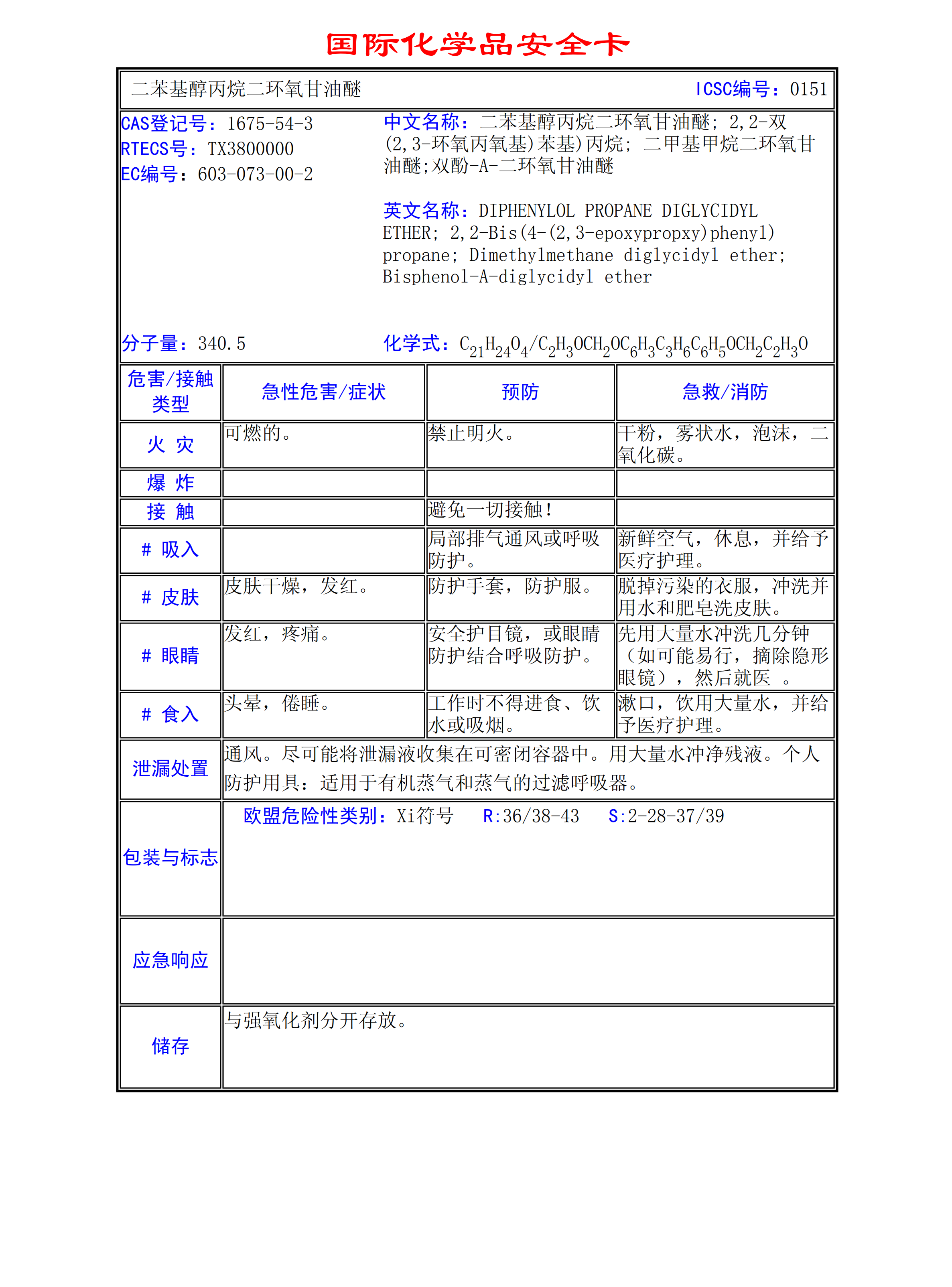 二苯基醇丙烷二環氧甘油醚MSDS