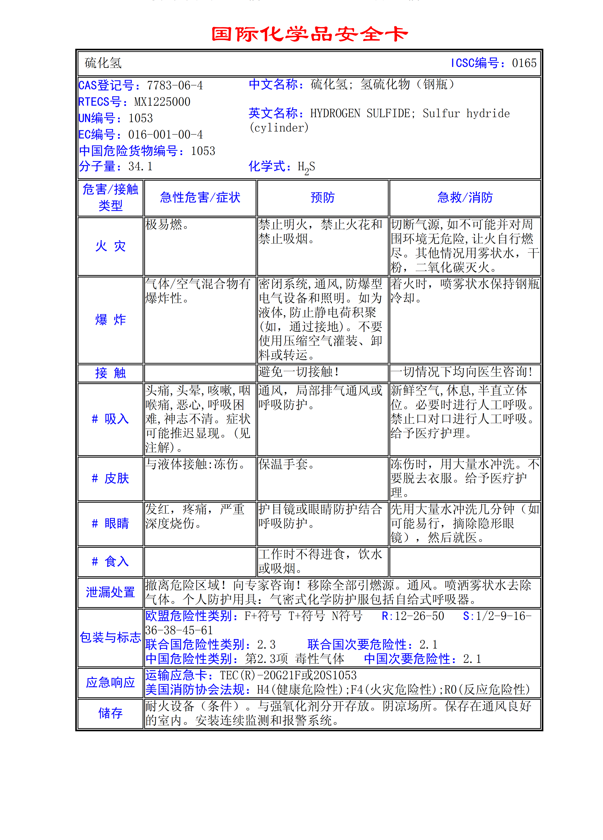硫化氫MSDS