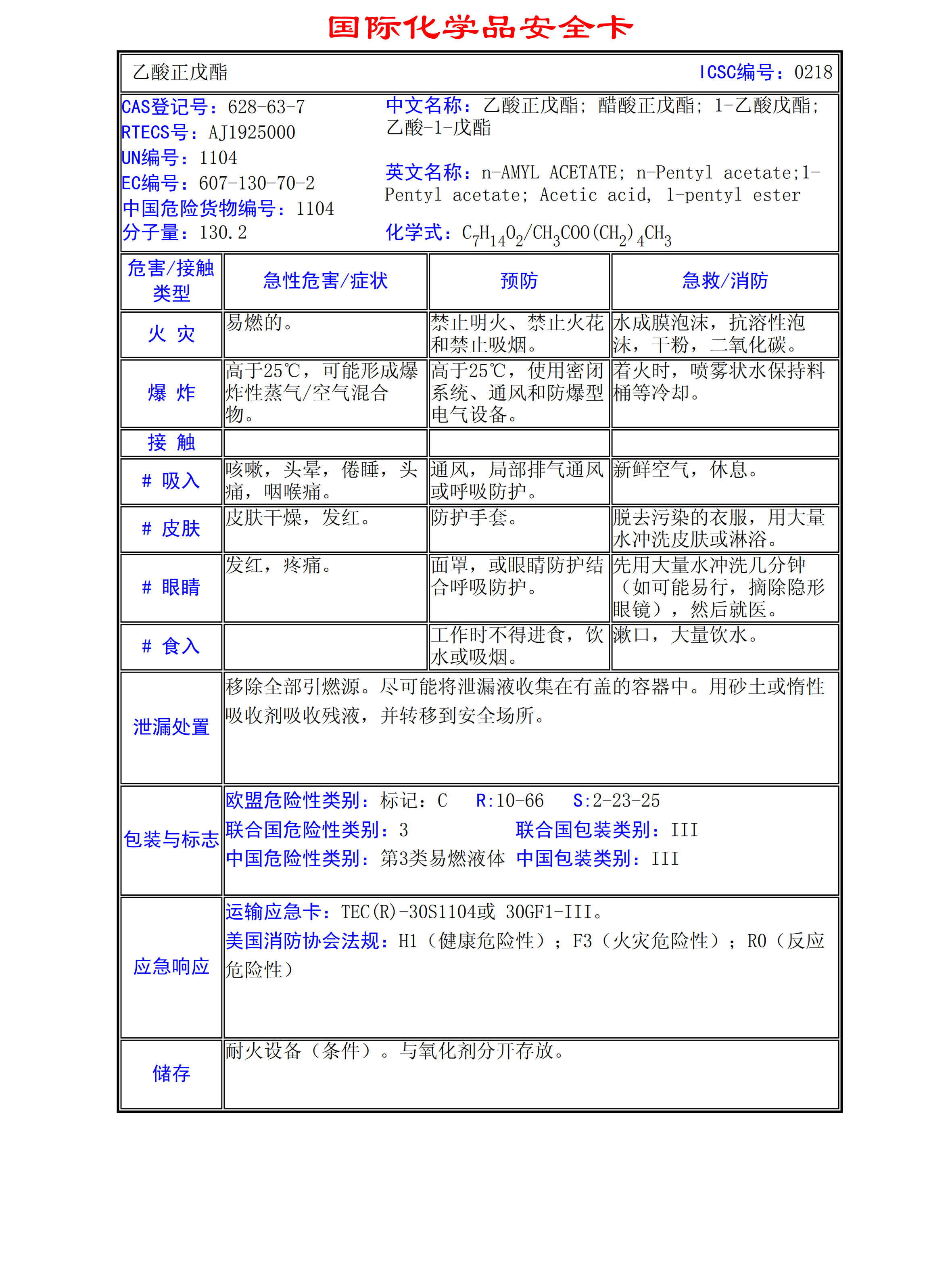 乙酸正戊酯MSDS