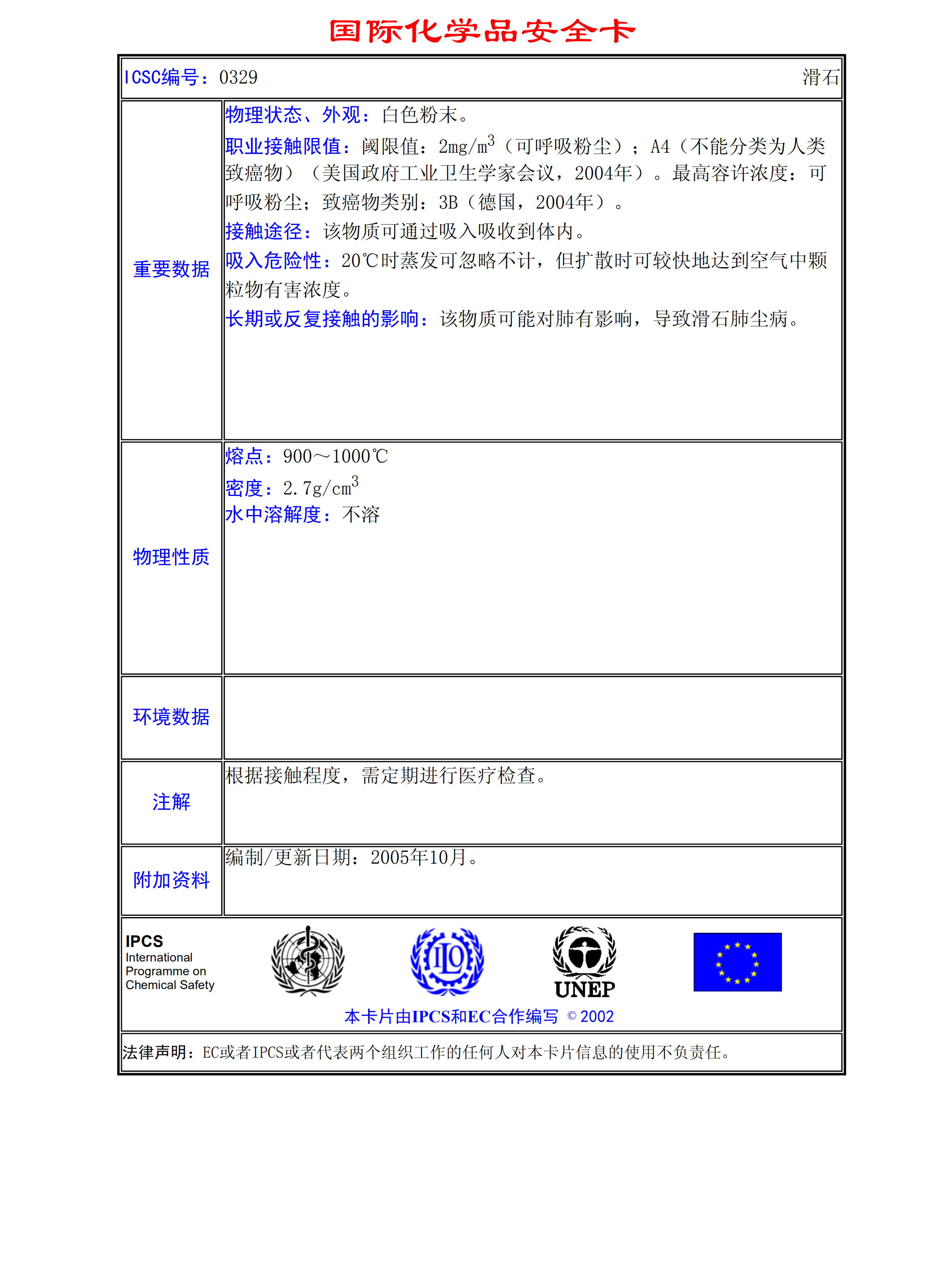 滑石MSDS