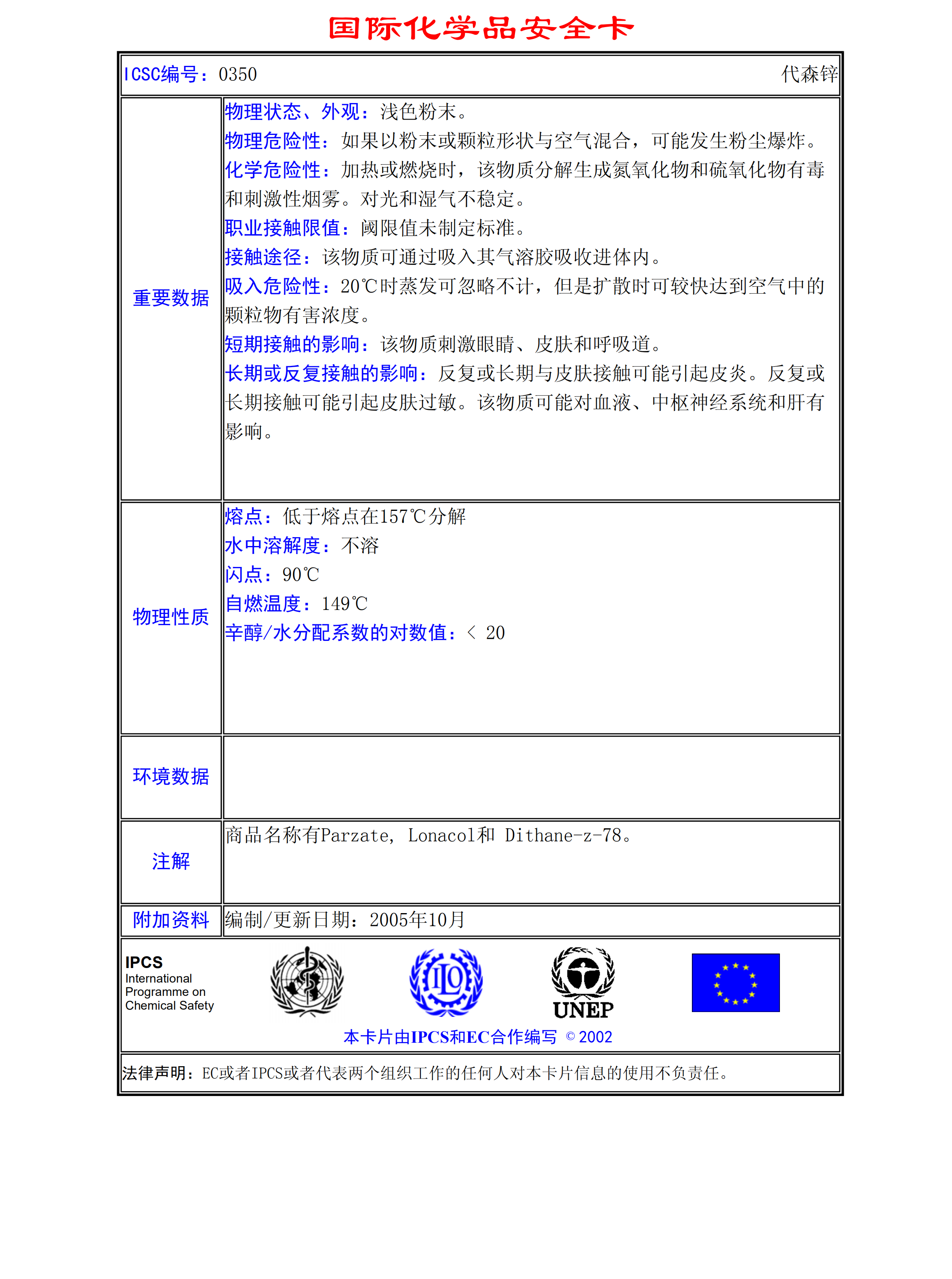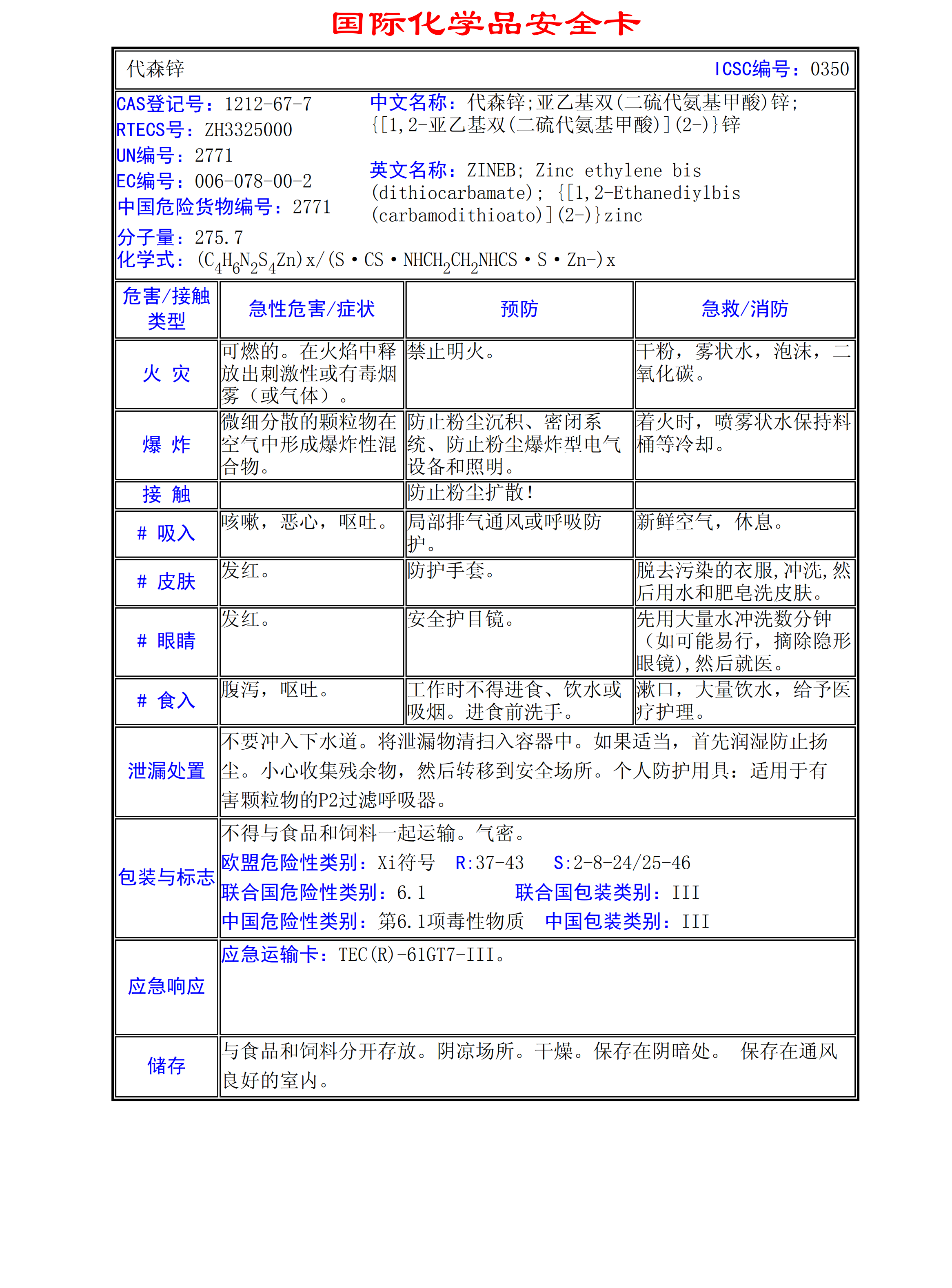 代森鋅MSDS
