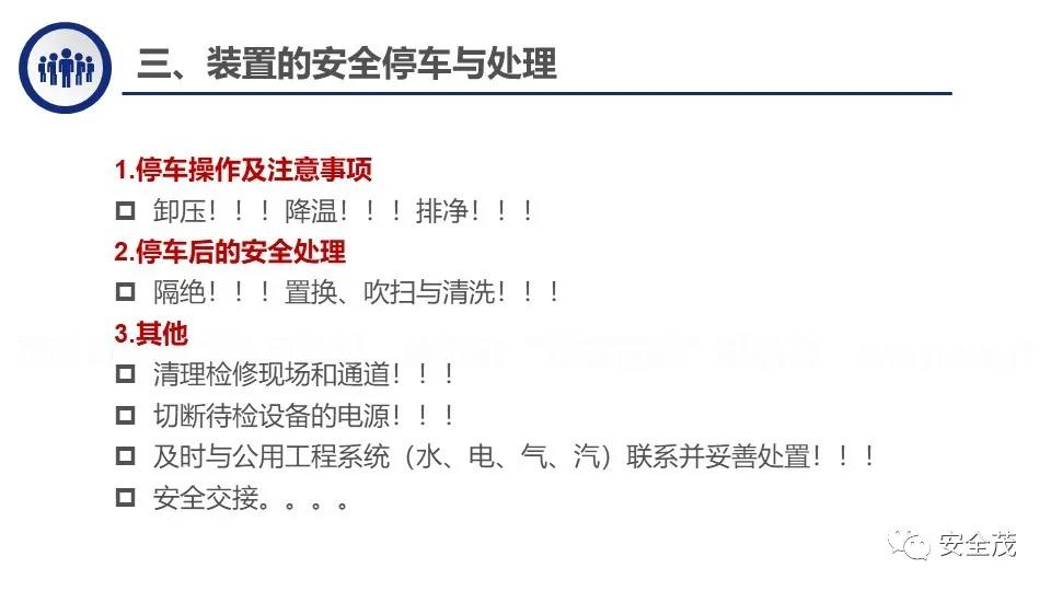 如何防止閃爆事故? 在實際工作中該如何預防閃爆事故呢?最好的方法就是采取一切可能的措施阻斷閃爆發生的條件。 閃爆與燃燒發生的條件有幾點共性,燃燒發生的條件有三個,分別是:可燃物、助燃物和著火源,而閃爆也離不開上面三點。在通常條件下,前兩個條件我們不可控,那么就要在控制引爆源上下功夫。 清除著火源; 2 切斷危險電源; 3 關閉所有現場人員的通訊工具; 4 控制好管道內及裝車時的流速,防止產生靜電; 5 控制好工藝指標及溫度,利用好廢氣回收系統,減少無組織排放的氣體; 6 做好設備、塔器及裝車車輛的靜電接地。