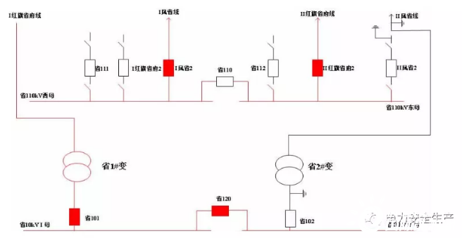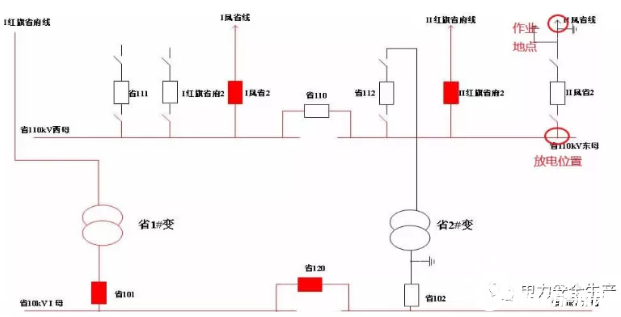 事發項目為某公司110千伏某變電站110千伏配電裝置改造,改造內容為更換110千伏室內敞開式手車斷路器,施工中標單位為某集團有限公司電力安裝分公司(省管產業單位,簡稱“安裝分公司”)。為不影響重要用戶供電,改造期間變電站采用Ⅰ紅旗省府線直接串帶省1#變、Ⅱ鳳省線直接串帶省2#變的過渡方式運行。6月12日改造完成后,110千伏母線恢復運行。(運行方式見圖1、圖2)
