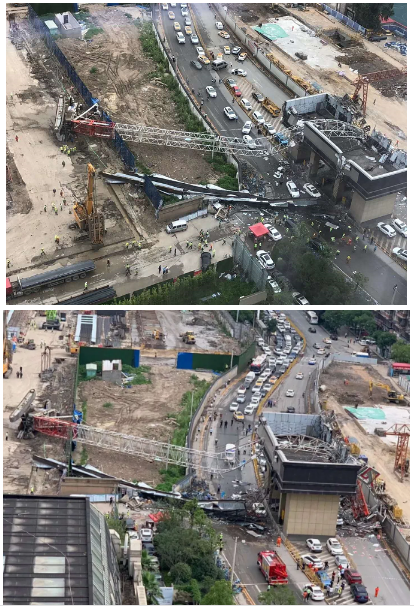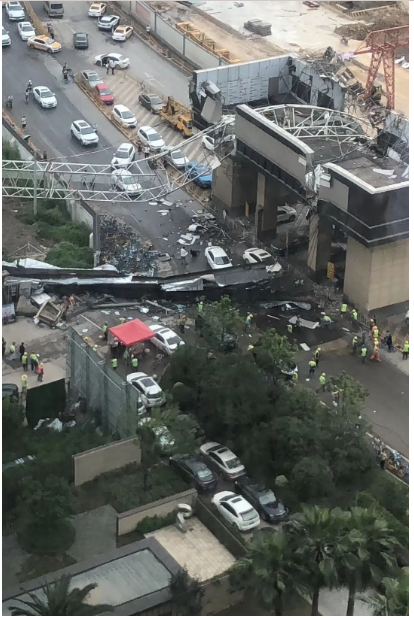 大臂造成非常嚴(yán)重的交通事故,下面來看履帶吊車身這邊的工地現(xiàn)場,從視頻上看,疑似是地面塌陷造成的事故(目前具體事故原因還在調(diào)查)