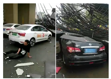 市民拍攝的多段視頻顯示,一輛黑色小轎車被倒塌的鋼筋壓住,后座一名年輕女子雙腿被壓受困,旁邊有人安撫她,等消防過來施救。另外還有一名男子受傷,坐在路面上,左手撐著身體,面部表情痛苦。