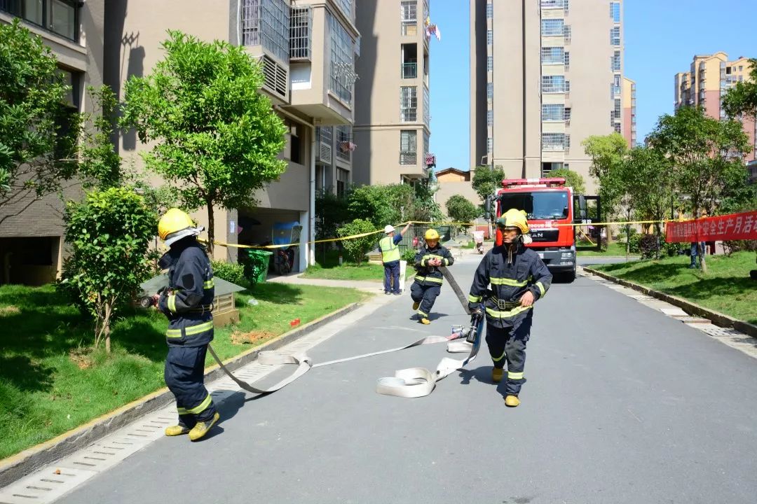 6月14日下午,由縣住建局、縣應急管理局、縣市監局聯合主辦的2019年修水縣“安全生產月”應急救援演練活動在縣玉龍國際小區開展??h消防大隊、縣第一人民醫院、縣港華燃氣有限公司、通力電梯有限公司、九江茗宇物業服務有限公司參演。