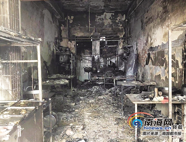 海口一家早餐店煤氣泄漏引發火災 店鋪燒毀6個煤氣瓶燒黑