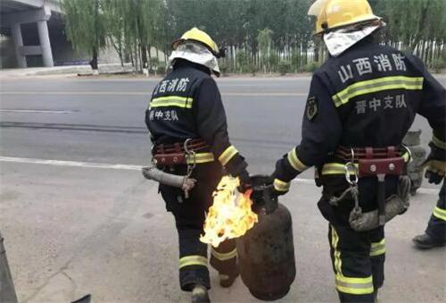 榆次:煤氣罐突然泄漏噴火 消防兵爭分奪秒轉移