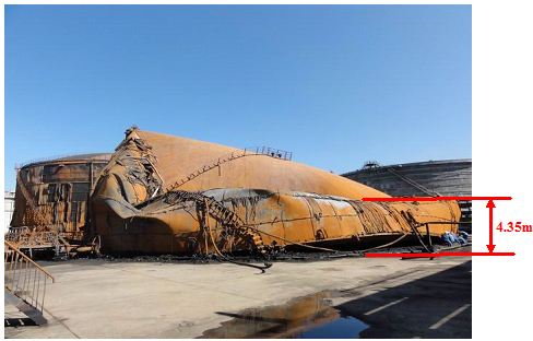875#罐被燒整體坍塌,南側罐壁由15.86米坍塌至4.35米,見圖2。