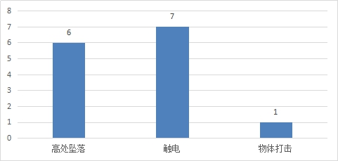 (四)按事故類(lèi)別統(tǒng)計(jì):三季度,高處墜落造成6人死亡,觸電造成7人死亡,物體打擊造成1人死亡。 電力人身傷亡事故不同類(lèi)別死亡人數(shù)